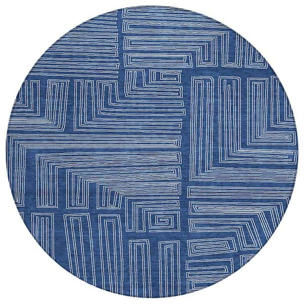 Chantille Machine Washable Indoor/Outdoor Abstract ACN1045 Navy 8 ft. x 8 ft. Area Rug