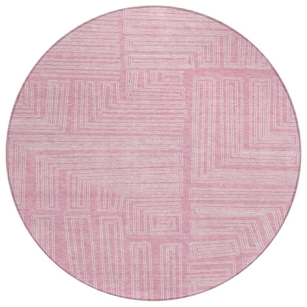 Chantille Machine Washable Indoor/Outdoor Abstract ACN1045 Pink 8 ft. x 8 ft. Area Rug