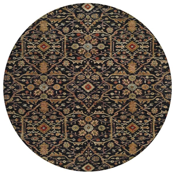 Chantille Machine Washable Indoor/Outdoor Abstract ACN1130 Black 8 ft. x 8 ft. Area Rug