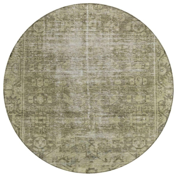 Chantille Machine Washable Indoor/Outdoor Abstract ACN1228 Olive 8 ft. x 8 ft. Area Rug
