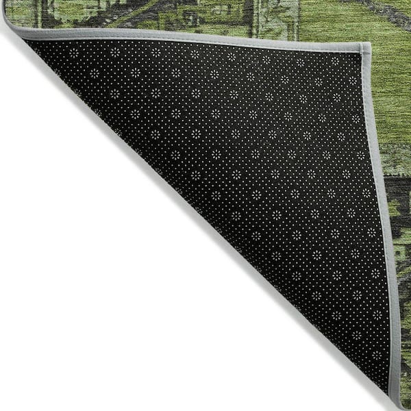 Chantille Machine Washable Indoor/Outdoor Abstract ACN1727 Olive 8 ft. x 8 ft. Round Rug