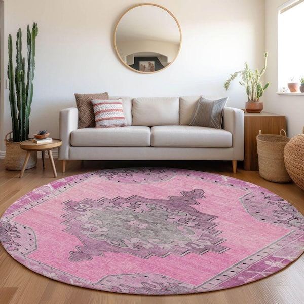 Chantille Machine Washable Indoor/Outdoor Abstract ACN1731 Pink 8 ft. x 8 ft. Round Rug