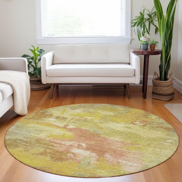 Chantille Machine Washable Indoor/Outdoor Abstract ACN1738 Aloe 8 ft. x 8 ft. Round Rug
