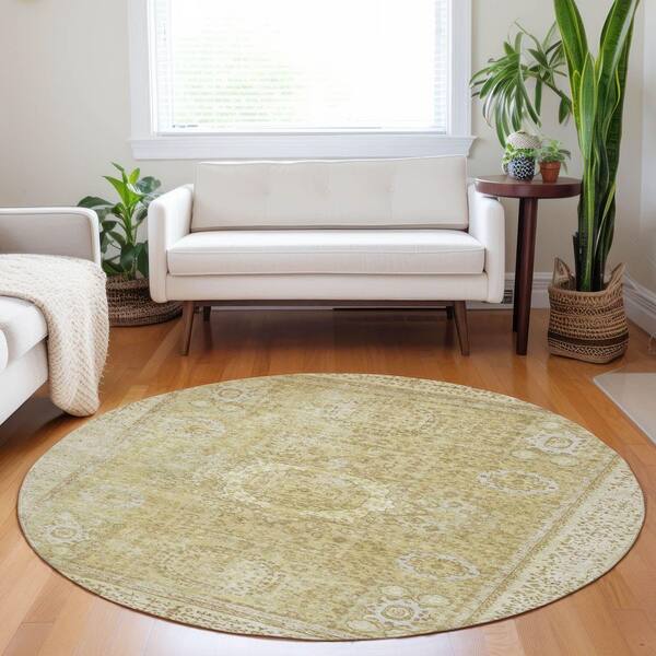 Chantille Machine Washable Indoor/Outdoor Abstract ACN1740 Beige 8 ft. x 8 ft. Round Rug