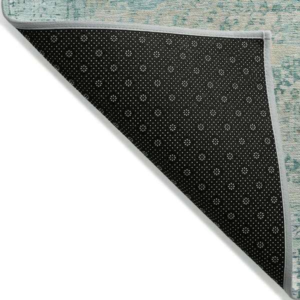 Chantille Machine Washable Indoor/Outdoor Abstract ACN1740 Turquoise 8 ft. x 8 ft. Round Rug