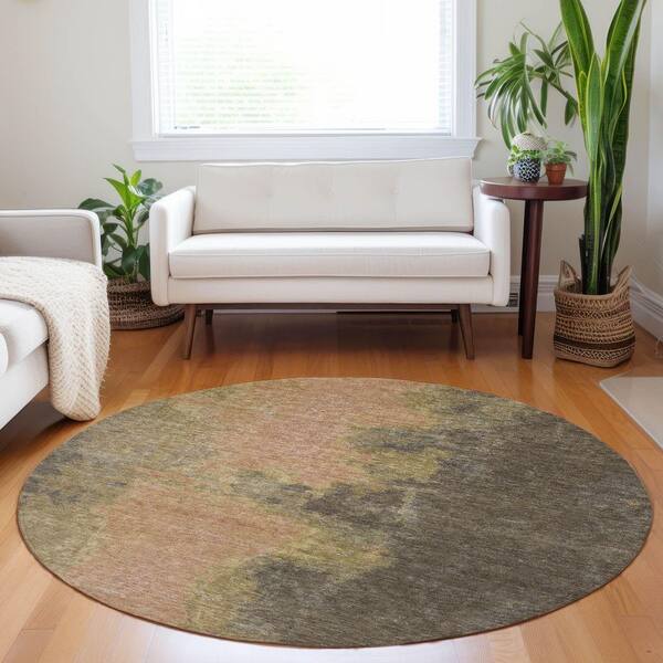 Chantille Machine Washable Indoor/Outdoor Abstract ACN1742 Fudge 8 ft. x 8 ft. Round Rug