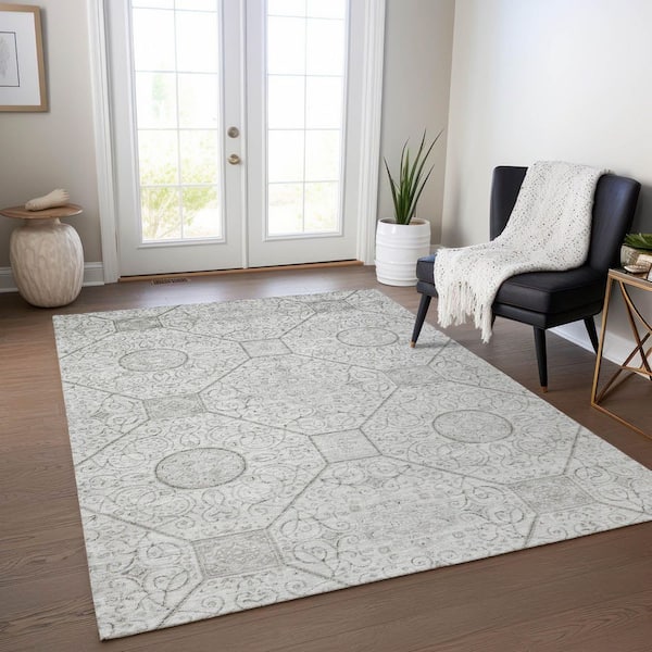 Chantille Machine Washable Indoor/Outdoor Abstract ACN1748 Silver 3 ft. x 5 ft. Area Rug