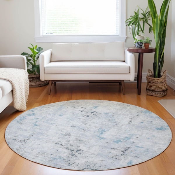 Chantille Machine Washable Indoor/Outdoor Abstract ACN1753 Sky 8 ft. x 8 ft. Round Rug