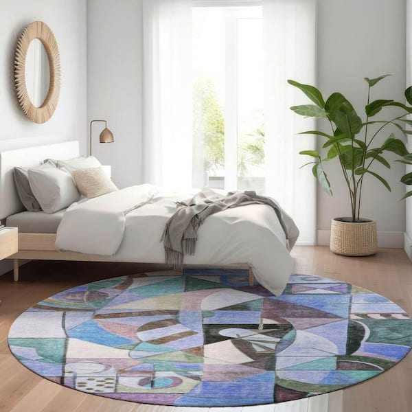 Chantille Machine Washable Indoor/Outdoor Abstract ACN1758 Green 8 ft. x 8 ft. Round Rug