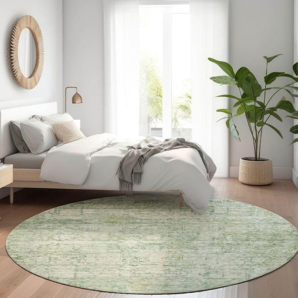 Chantille Machine Washable Indoor/Outdoor Abstract ACN1764 Aloe 8 ft. x 8 ft. Round Rug