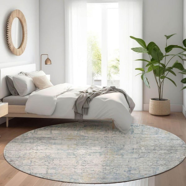 Chantille Machine Washable Indoor/Outdoor Abstract ACN1764 Linen 8 ft. x 8 ft. Round Rug
