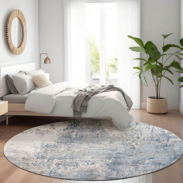 Chantille Machine Washable Indoor/Outdoor Abstract ACN1765 Blue 8 ft. x 8 ft. Round Rug