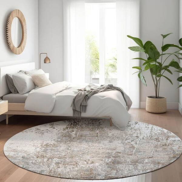 Chantille Machine Washable Indoor/Outdoor Abstract ACN1765 Brown 8 ft. x 8 ft. Round Rug