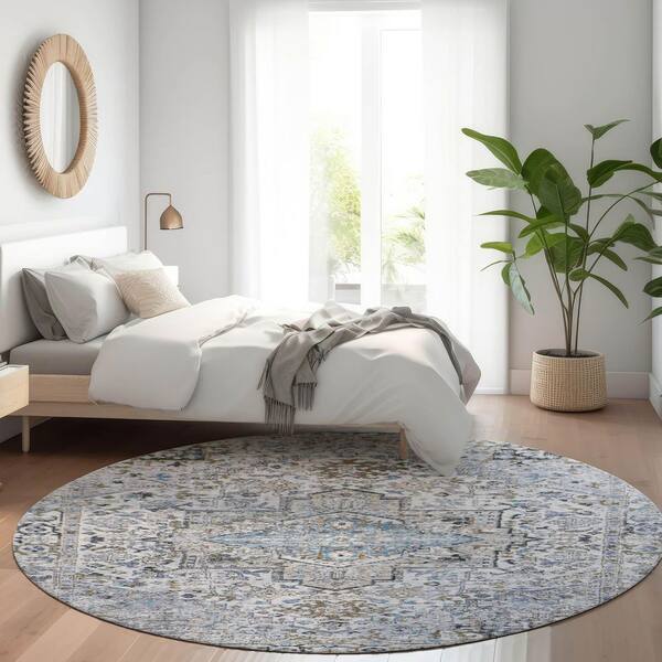 Chantille Machine Washable Indoor/Outdoor Abstract ACN1767 Linen 8 ft. x 8 ft. Round Rug