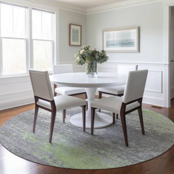 Chantille Machine Washable Indoor/Outdoor Abstract ACN1777 Aloe 8 ft. x 8 ft. Round Rug