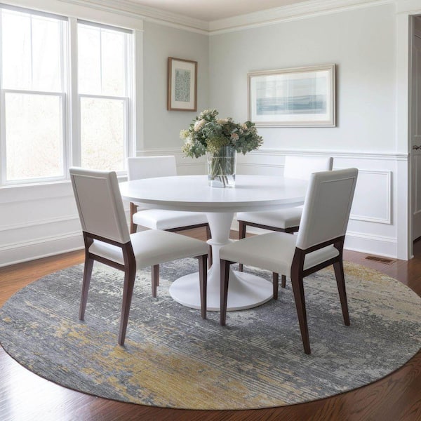 Chantille Machine Washable Indoor/Outdoor Abstract ACN1777 Gold 8 ft. x 8 ft. Round Rug
