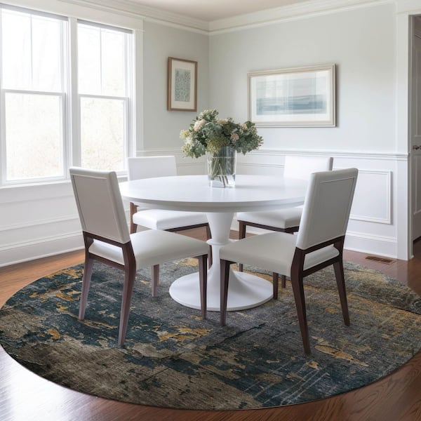 Chantille Machine Washable Indoor/Outdoor Abstract ACN1780 Gray 8 ft. x 8 ft. Round Rug