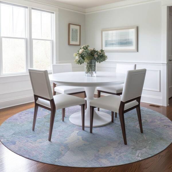 Chantille Machine Washable Indoor/Outdoor Abstract ACN1785 Sky 8 ft. x 8 ft. Round Rug