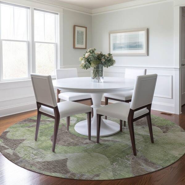 Chantille Machine Washable Indoor/Outdoor Abstract ACN1786 Aloe 8 ft. x 8 ft. Round Rug