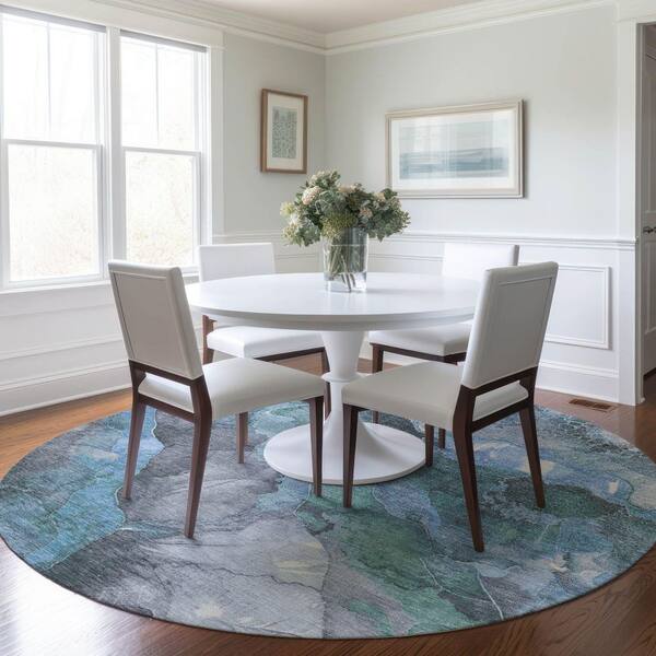 Chantille Machine Washable Indoor/Outdoor Abstract ACN1787 Blue 8 ft. x 8 ft. Round Rug