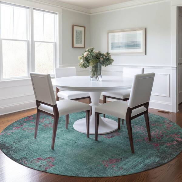 Chantille Machine Washable Indoor/Outdoor Abstract ACN1788 Seafoam 8 ft. x 8 ft. Round Rug