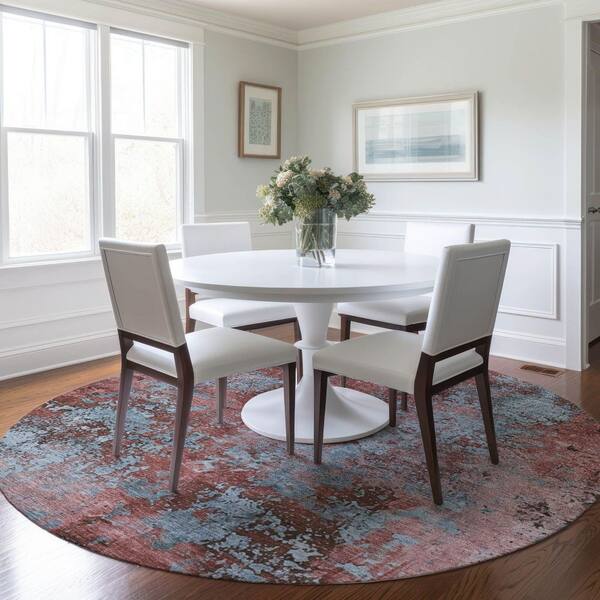 Chantille Machine Washable Indoor/Outdoor Abstract ACN1789 Coral 8 ft. x 8 ft. Round Rug