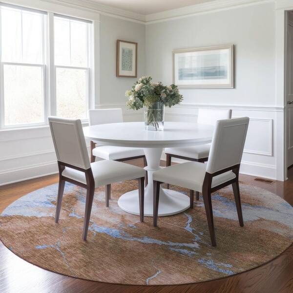 Chantille Machine Washable Indoor/Outdoor Abstract ACN1790 Terracotta 8 ft. x 8 ft. Round Rug