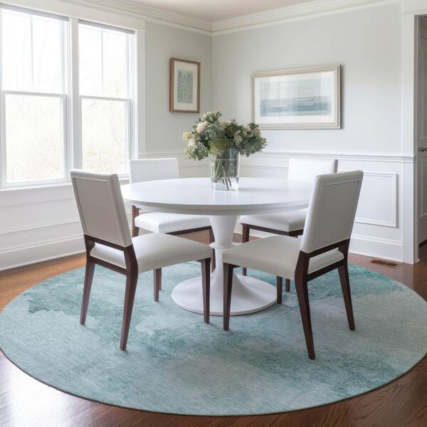 Chantille Machine Washable Indoor/Outdoor Abstract ACN1791 Teal 8 ft. x 8 ft. Round Rug