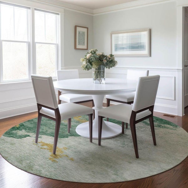 Chantille Machine Washable Indoor/Outdoor Abstract ACN1792 Emerald 8 ft. x 8 ft. Round Rug