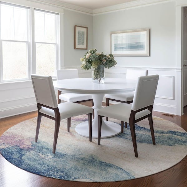 Chantille Machine Washable Indoor/Outdoor Abstract ACN1799 Pearl 8 ft. x 8 ft. Round Rug