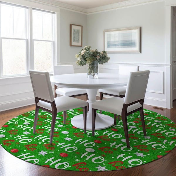 Chantille Machine Washable Indoor/Outdoor Abstract ACN1810 Green 8 ft. x 8 ft. Round Rug