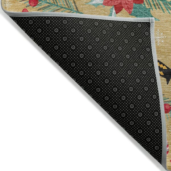Chantille Machine Washable Indoor/Outdoor Abstract ACN1822 Gold 8 ft. x 8 ft. Round Rug