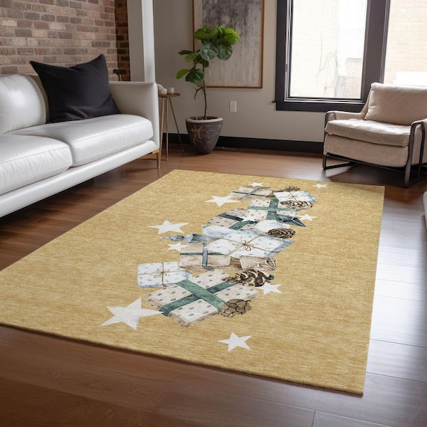 Chantille Machine Washable Indoor/Outdoor Abstract ACN1825 Gold 3 ft. x 5 ft. Area Rug