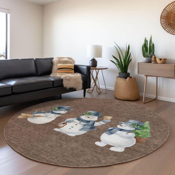 Chantille Machine Washable Indoor/Outdoor Abstract ACN1826 Brown 8 ft. x 8 ft. Round Rug