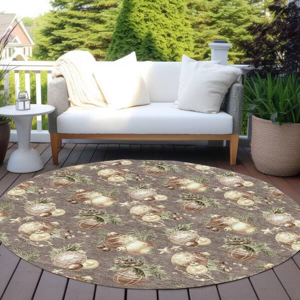 Chantille Machine Washable Indoor/Outdoor Abstract ACN1828 Taupe 8 ft. x 8 ft. Round Rug