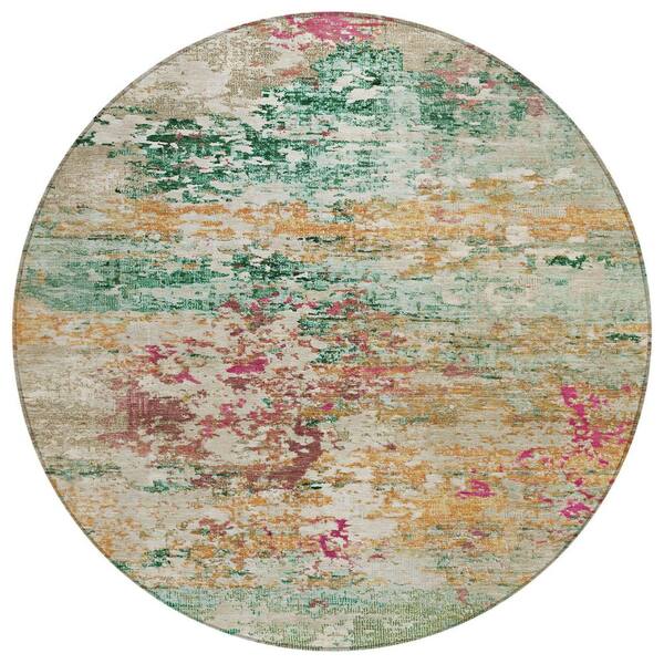 Chantille Machine Washable Indoor/Outdoor Abstract ACN1830 Orange 8 ft. x 8 ft. Round Rug