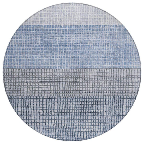 Chantille Machine Washable Indoor/Outdoor Abstract ACN1831 Blue 8 ft. x 8 ft. Round Rug
