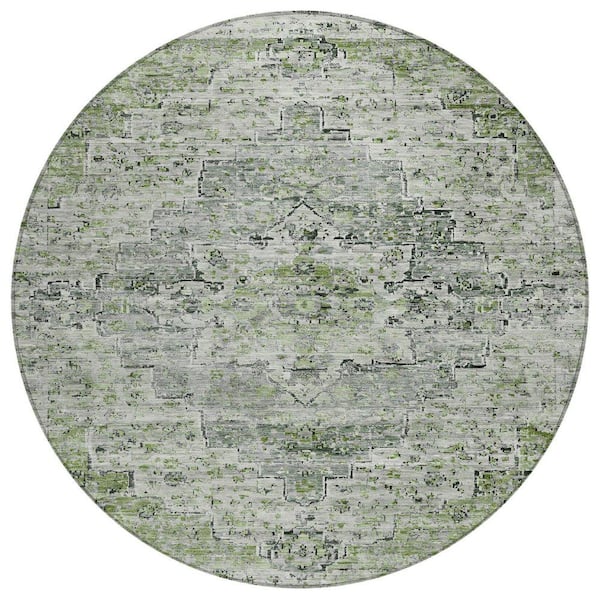 Chantille Machine Washable Indoor/Outdoor Abstract ACN1832 Aloe 8 ft. x 8 ft. Round Rug