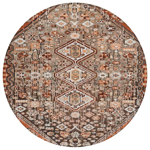 Chantille Machine Washable Indoor/Outdoor Abstract ACN1834 Fudge 8 ft. x 8 ft. Round Rug
