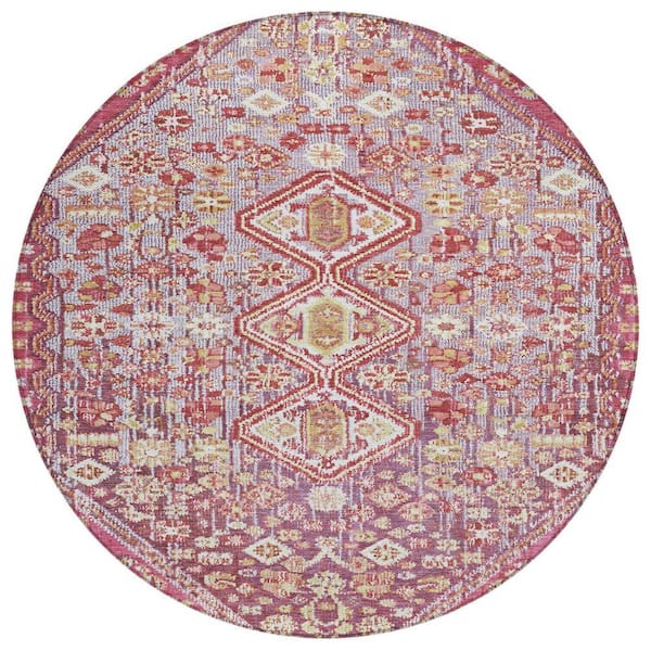 Chantille Machine Washable Indoor/Outdoor Abstract ACN1834 Merlot 8 ft. x 8 ft. Round Rug