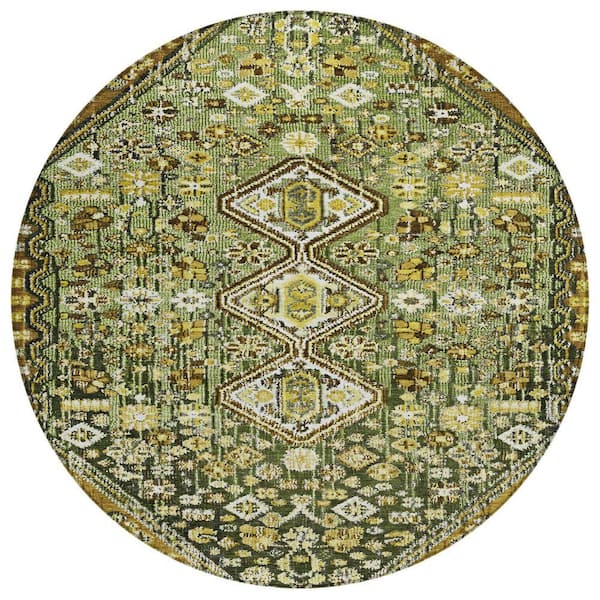 Chantille Machine Washable Indoor/Outdoor Abstract ACN1834 Olive 8 ft. x 8 ft. Round Rug
