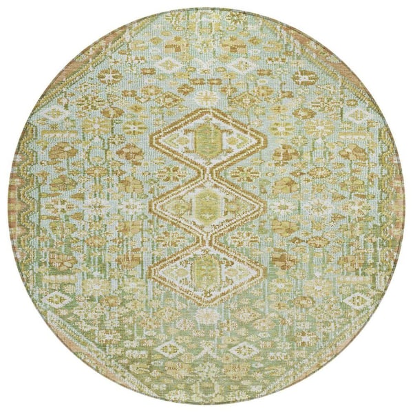 Chantille Machine Washable Indoor/Outdoor Abstract ACN1834 Sage 8 ft. x 8 ft. Round Rug