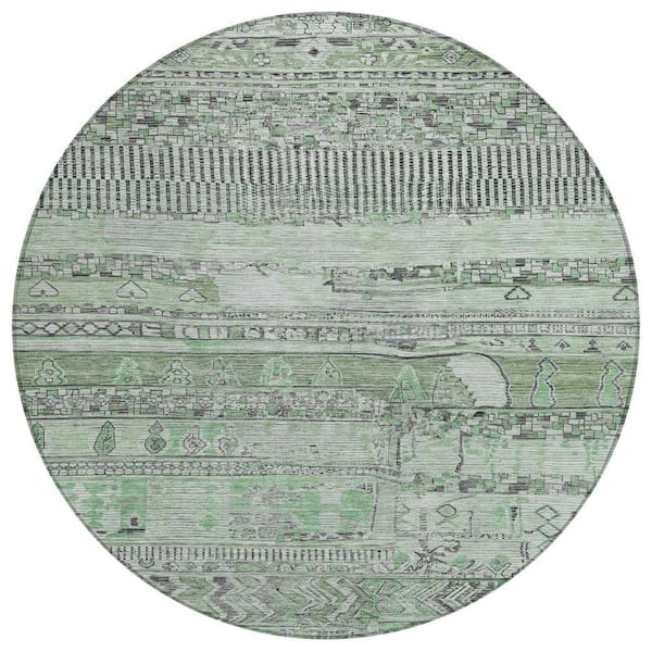 Chantille Machine Washable Indoor/Outdoor Abstract ACN1835 Sage 8 ft. x 8 ft. Round Rug