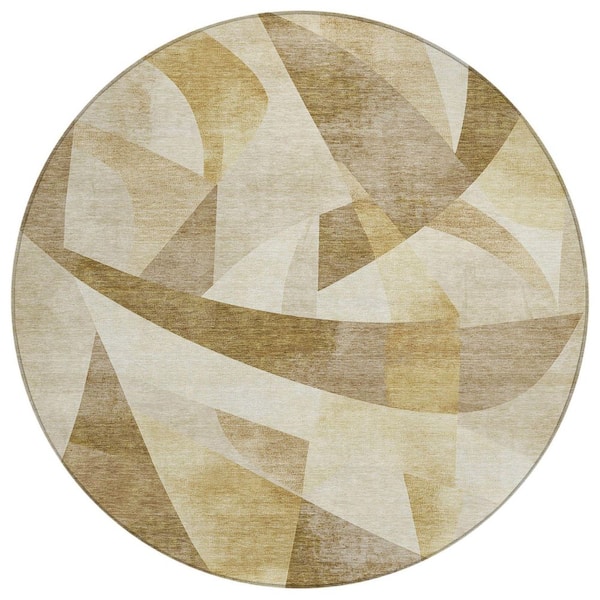 Chantille Machine Washable Indoor/Outdoor Abstract ACN1836 Brown 8 ft. x 8 ft. Round Rug