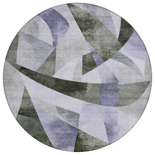 Chantille Machine Washable Indoor/Outdoor Abstract ACN1836 Olive 8 ft. x 8 ft. Round Rug