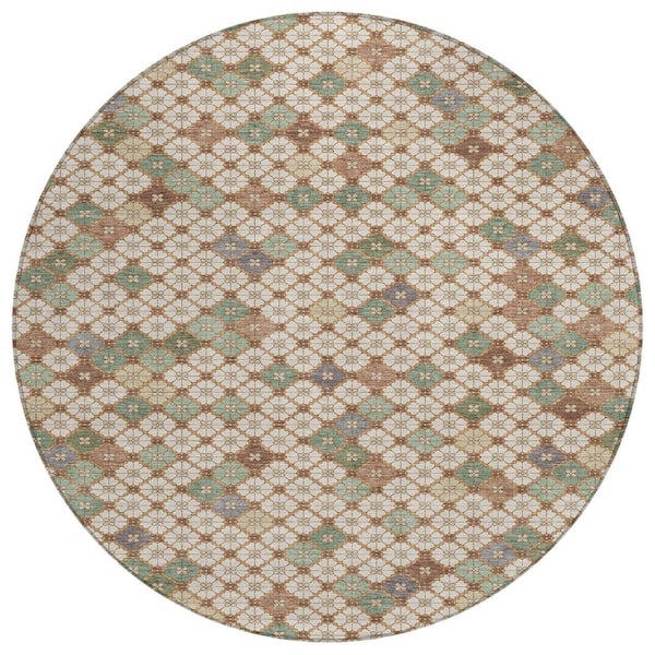 Chantille Machine Washable Indoor/Outdoor Abstract ACN1837 Beige 8 ft. x 8 ft. Round Rug