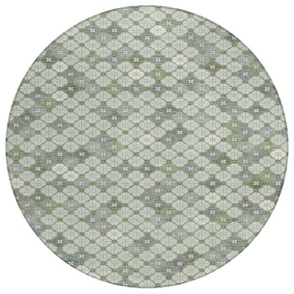 Chantille Machine Washable Indoor/Outdoor Abstract ACN1837 Mint 8 ft. x 8 ft. Round Rug