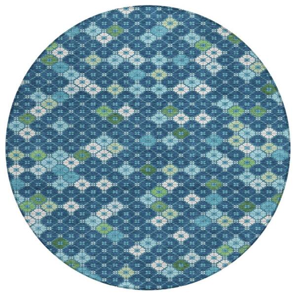 Chantille Machine Washable Indoor/Outdoor Abstract ACN1837 Navy 8 ft. x 8 ft. Round Rug