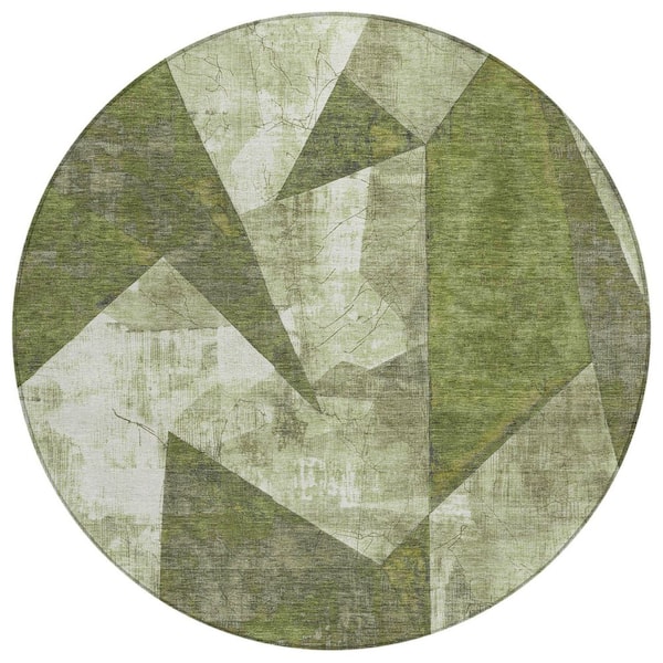 Chantille Machine Washable Indoor/Outdoor Abstract ACN1838 Green 8 ft. x 8 ft. Round Rug