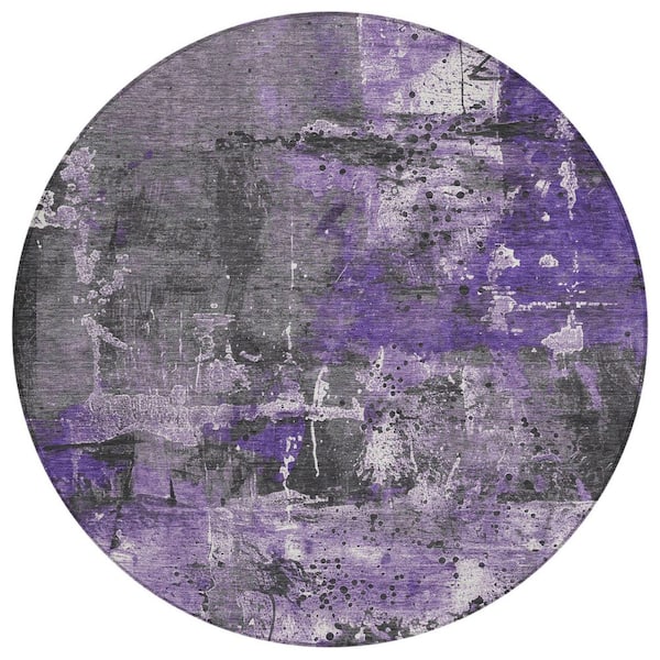 Chantille Machine Washable Indoor/Outdoor Abstract ACN1839 Purple 8 ft. x 8 ft. Round Rug